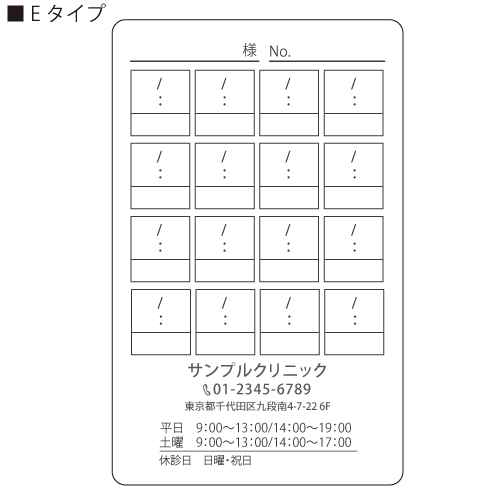 ※裏面タイプ、C、D、Eタイプをお選びの場合、医院名、お電話番号、住所、診療時間をお伺いし、反映させていただいた後に印刷させていただきます。
