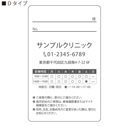 ※裏面タイプをお選びの場合、医院名、お電話番号、住所、診療時間をお伺いし、反映させていただいた後に印刷させていただきます。