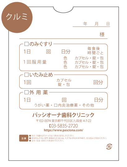 医院情報(医院名/ご住所/電話番号/URL)を入れて印刷いたします。