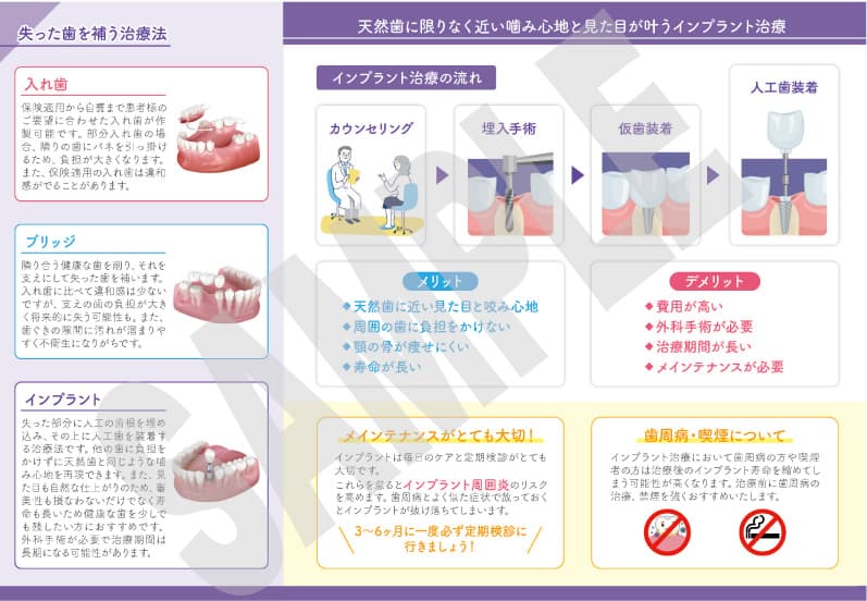 インプラントの仕組みやメリットを分かりやすく解説し、治療の選択肢としてご検討いただける内容となっています。