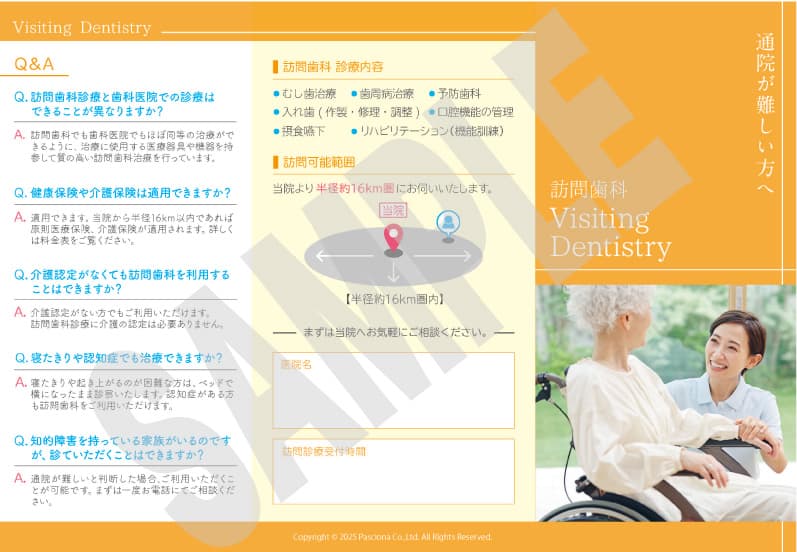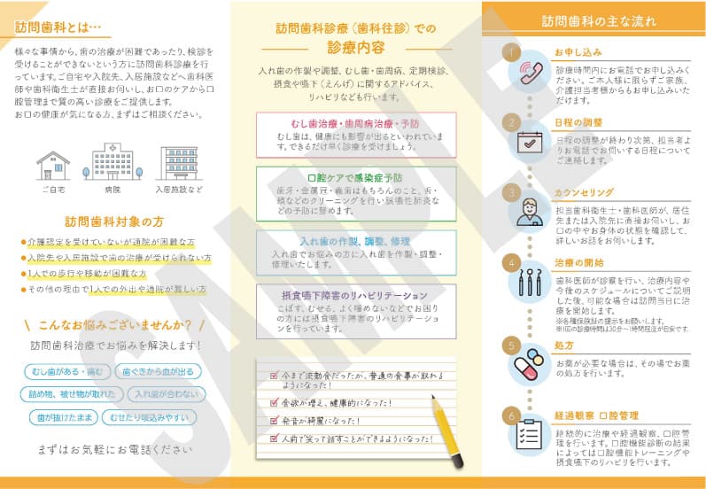 訪問歯科についてのよくある質問や診療内容、訪問診療の流れなどをご紹介しています。