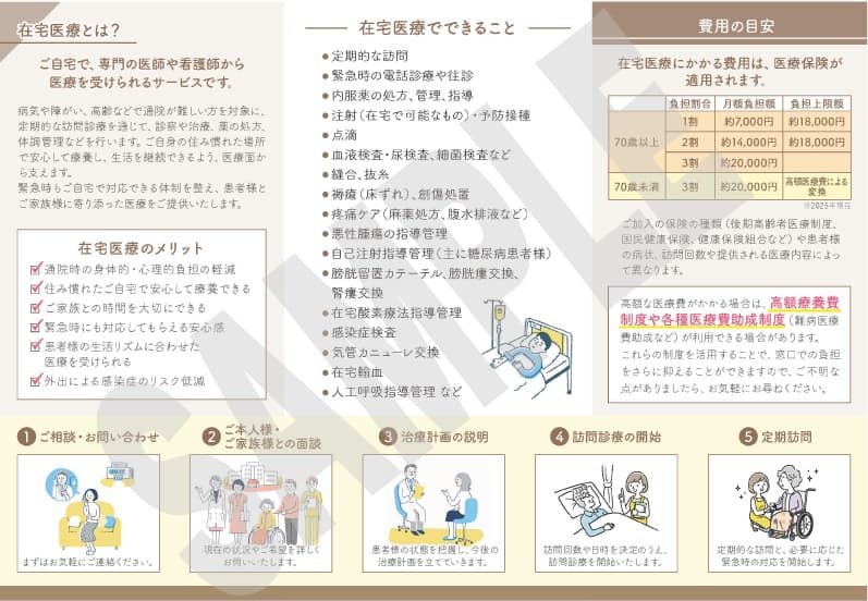 在宅医療でできること、一般的な費用の目安、診療の流れなどを分かりやすく解説しています。