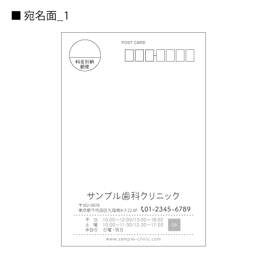 宛名面に、医院情報(医院名/ご住所/電話番号/URL)を入れて印刷いたします。