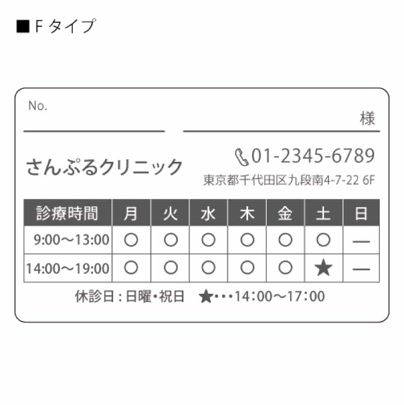 ※裏面タイプE、F、G、H、I、Kタイプをお選びの場合、医院名、お電話番号、住所、診療時間をお伺いし、反映させていただいた後に印刷させていただきます。
