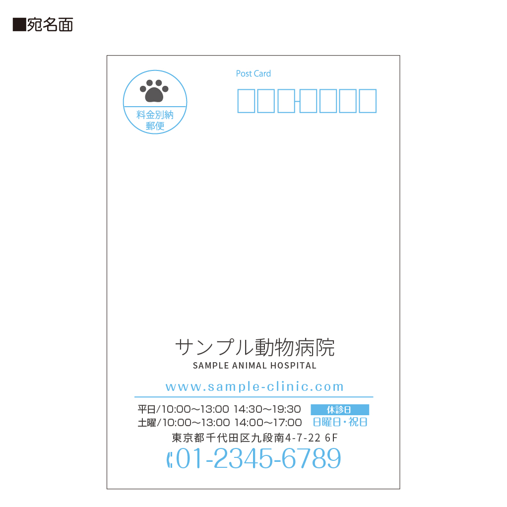 宛名面に、医院情報(医院名/ご住所/電話番号/URL)を入れて印刷いたします。