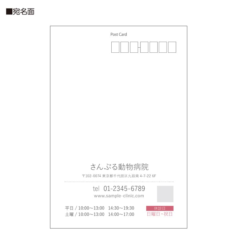 宛名面に、医院情報(医院名/ご住所/電話番号/URL)を入れて印刷いたします。