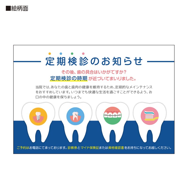患者さんに定期検診をお知らせするリコールハガキです。