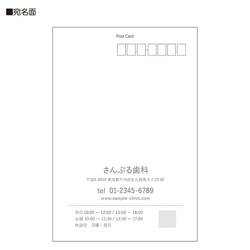 宛名面に、医院情報(医院名/ご住所/電話番号/URL)を入れて印刷いたします。