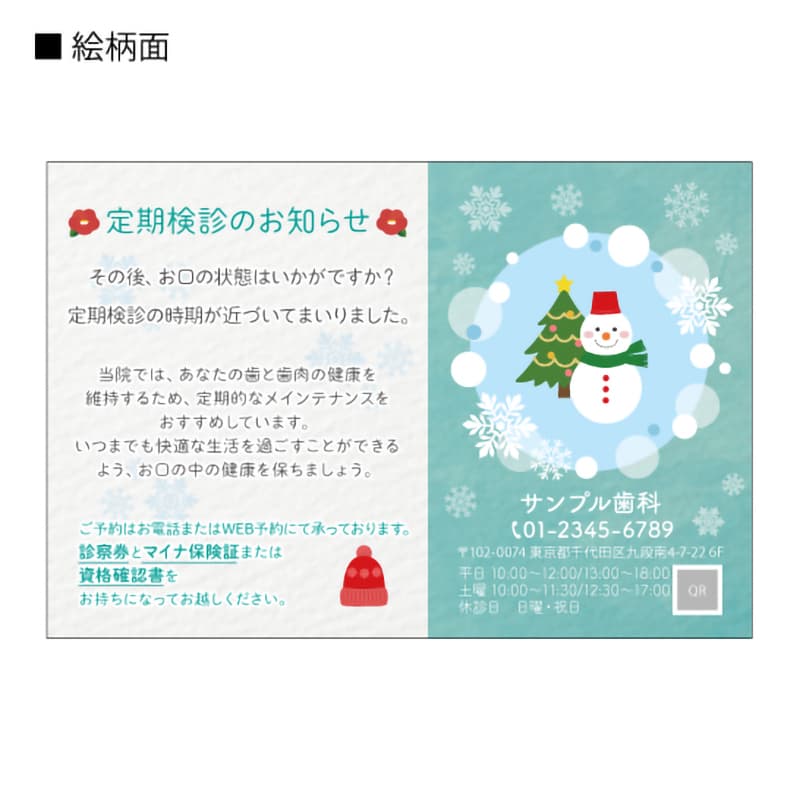 宛名面に、医院情報(医院名/ご住所/電話番号/URL)を入れて印刷いたします。