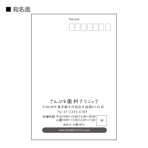 宛名面に、医院情報(医院名/ご住所/電話番号/URL)を入れて印刷いたします。