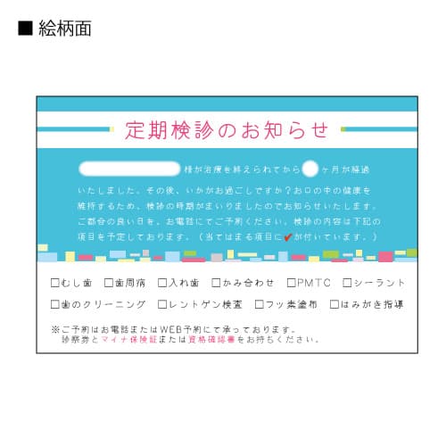 患者さんに定期検診をお知らせするリコールハガキです。