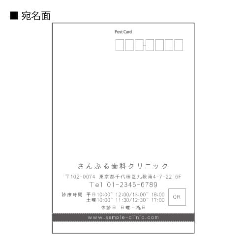 宛名面に、医院情報(医院名/ご住所/電話番号/URL)を入れて印刷いたします。