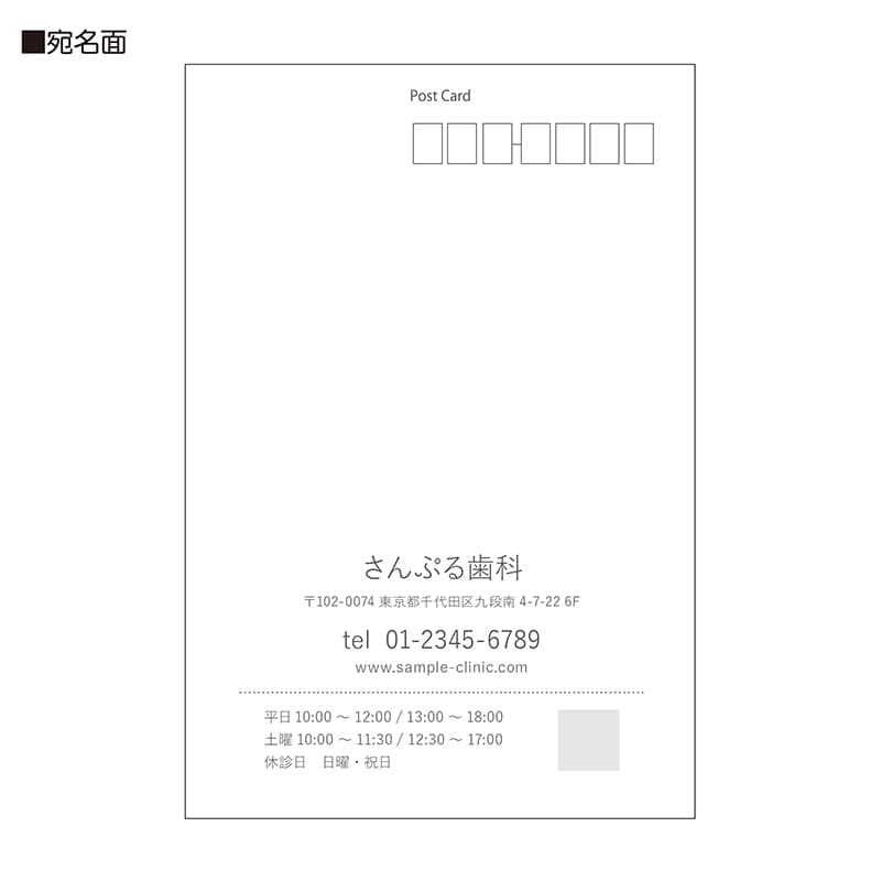 宛名面に、医院情報(医院名/ご住所/電話番号/URL)を入れて印刷いたします。