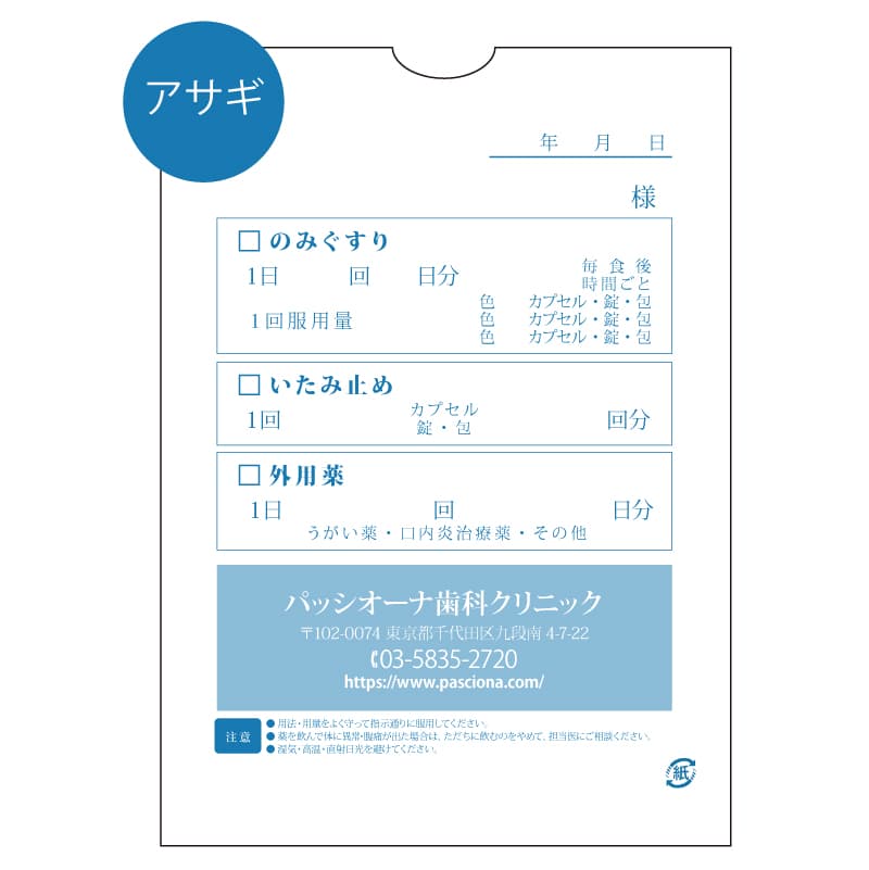 ※医院ロゴマークの掲載をご希望の場合は、薬袋Cタイプをお選びください。