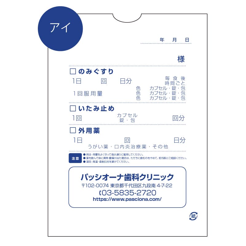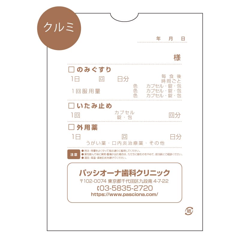 ※医院ロゴマークの掲載をご希望の場合は、薬袋Cタイプをお選びください。