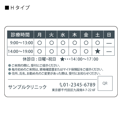 ※裏面タイプをお選びの場合、医院名、お電話番号、住所、診療時間をお伺いし、反映させていただいた後に印刷させていただきます。