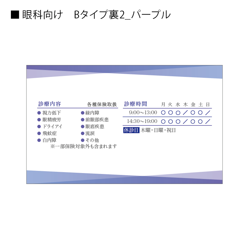【名刺】眼科さんにおすすめ! Bタイプ/パープル