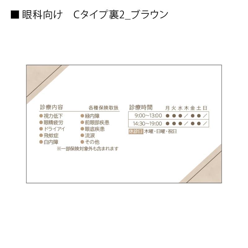 【名刺】眼科さんにおすすめ! Cタイプ/ブラウン