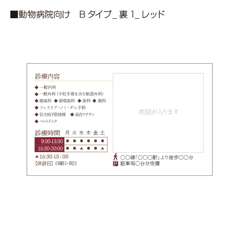【医院カード】動物病院さんにおすすめ! Bタイプ/レッド