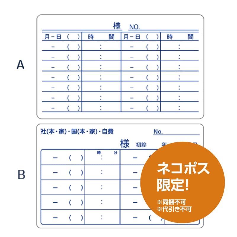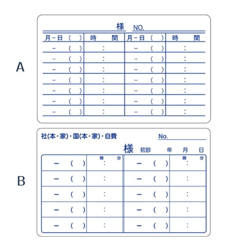 7行3列タイプと、患者様のお名前やカルテ番号を省略できる