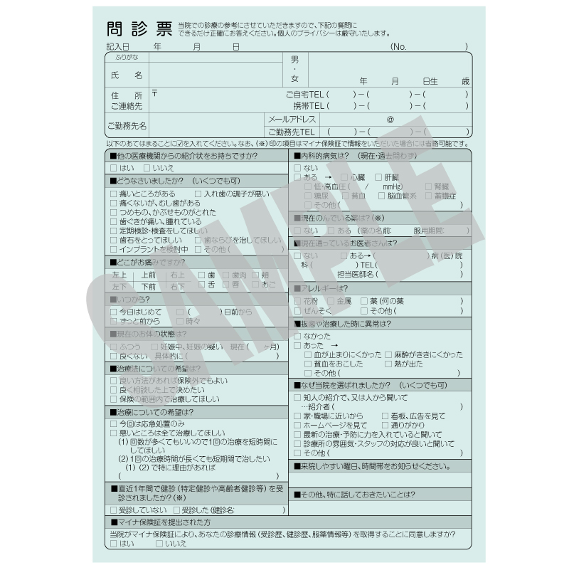 問診票(大人用)【マイナ保険証対応】