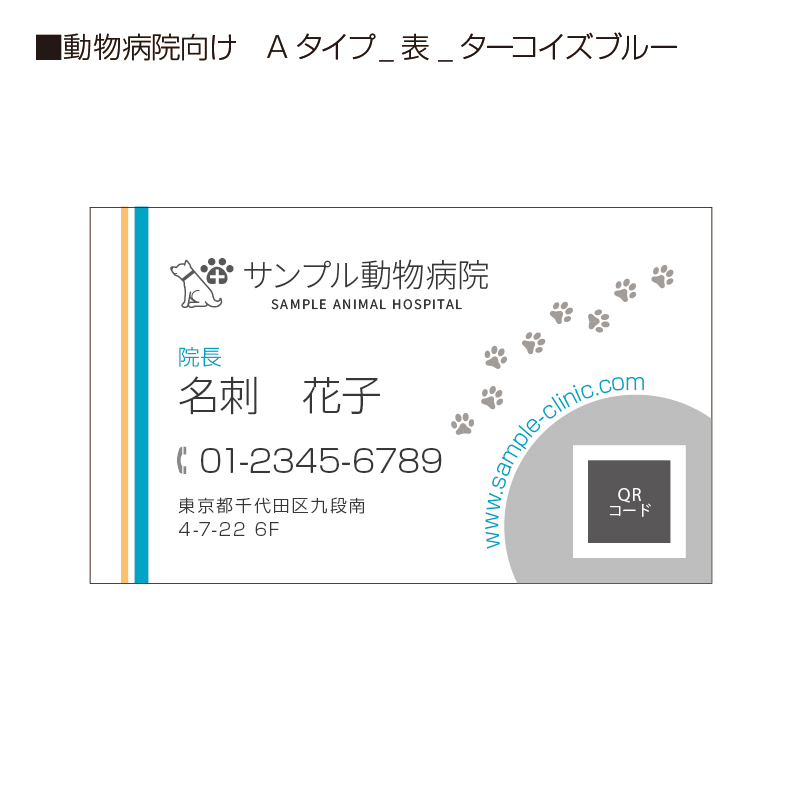 【名刺】動物病院さんにおすすめ! Aタイプ/ターコイズブルー