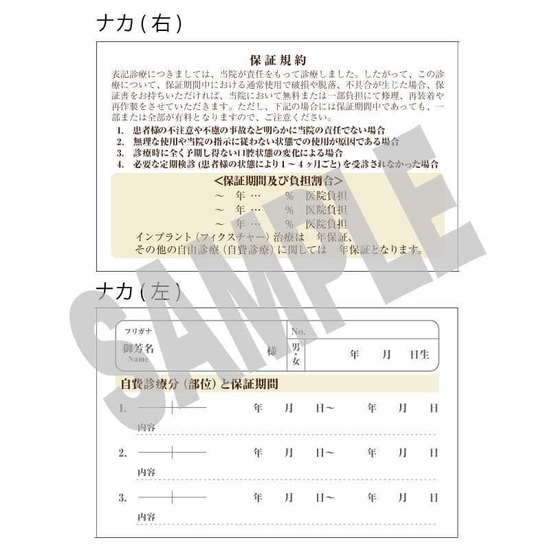 2つ折カードタイプ 自費診療用保証書50枚入り