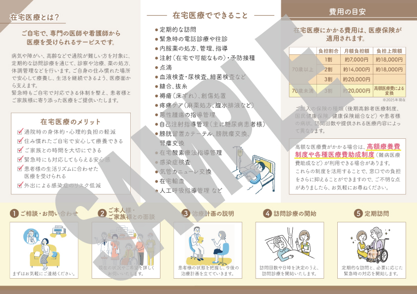 在宅医療でできること、一般的な費用の目安、診療の流れなどを分かりやすく解説しています。