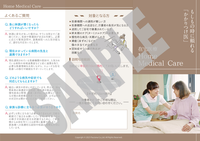 医院様の特長などを補足いただきながら、ご説明の際にもご使用いただきやすい内容になっています。