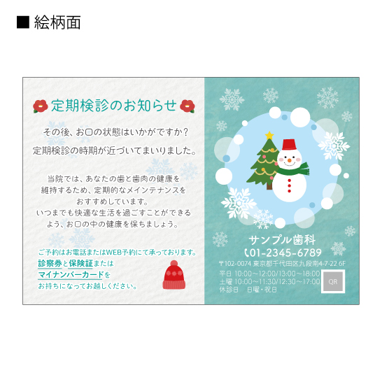 宛名面に、医院情報(医院名/ご住所/電話番号/URL)を入れて印刷いたします。
