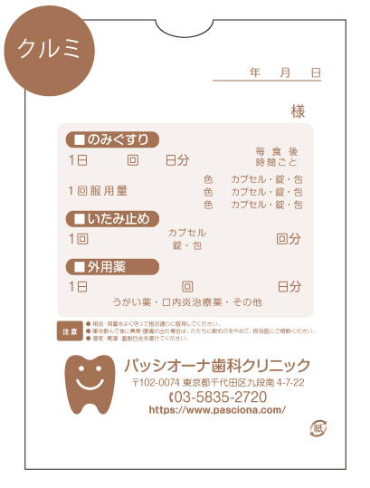 医院情報(医院名/ご住所/電話番号/URL)を入れて印刷いたします。