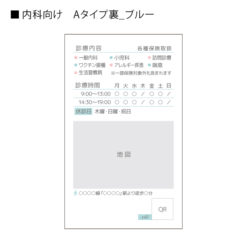 【名刺】内科さんにおすすめ! Aタイプ/ブルー