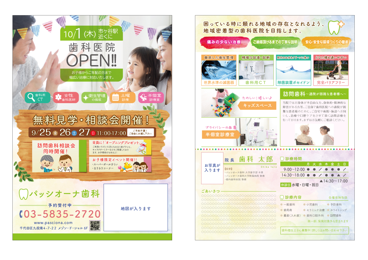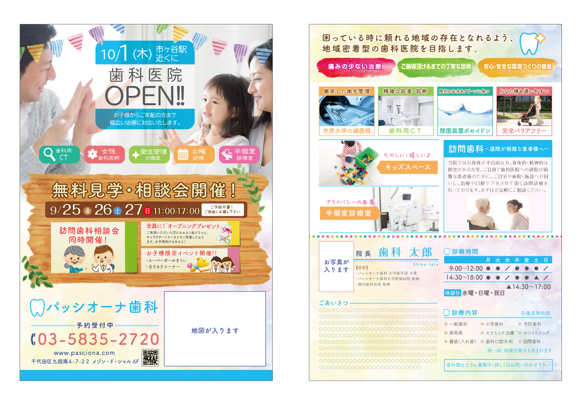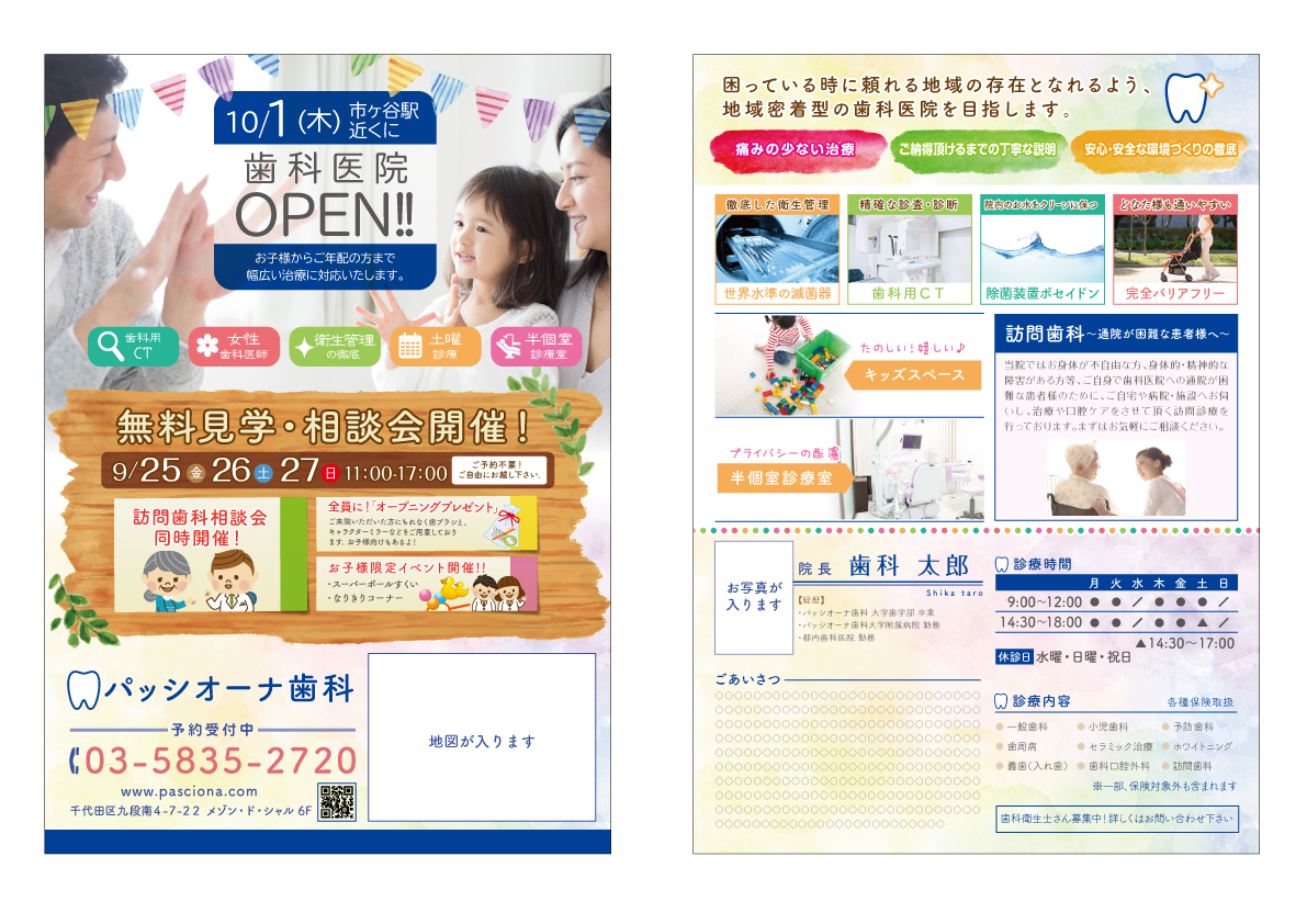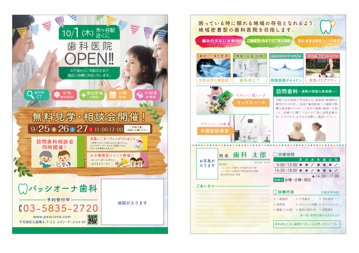 ※完全オリジナルデザインで作成や、新聞折込、ポスティングの手配も可能です。