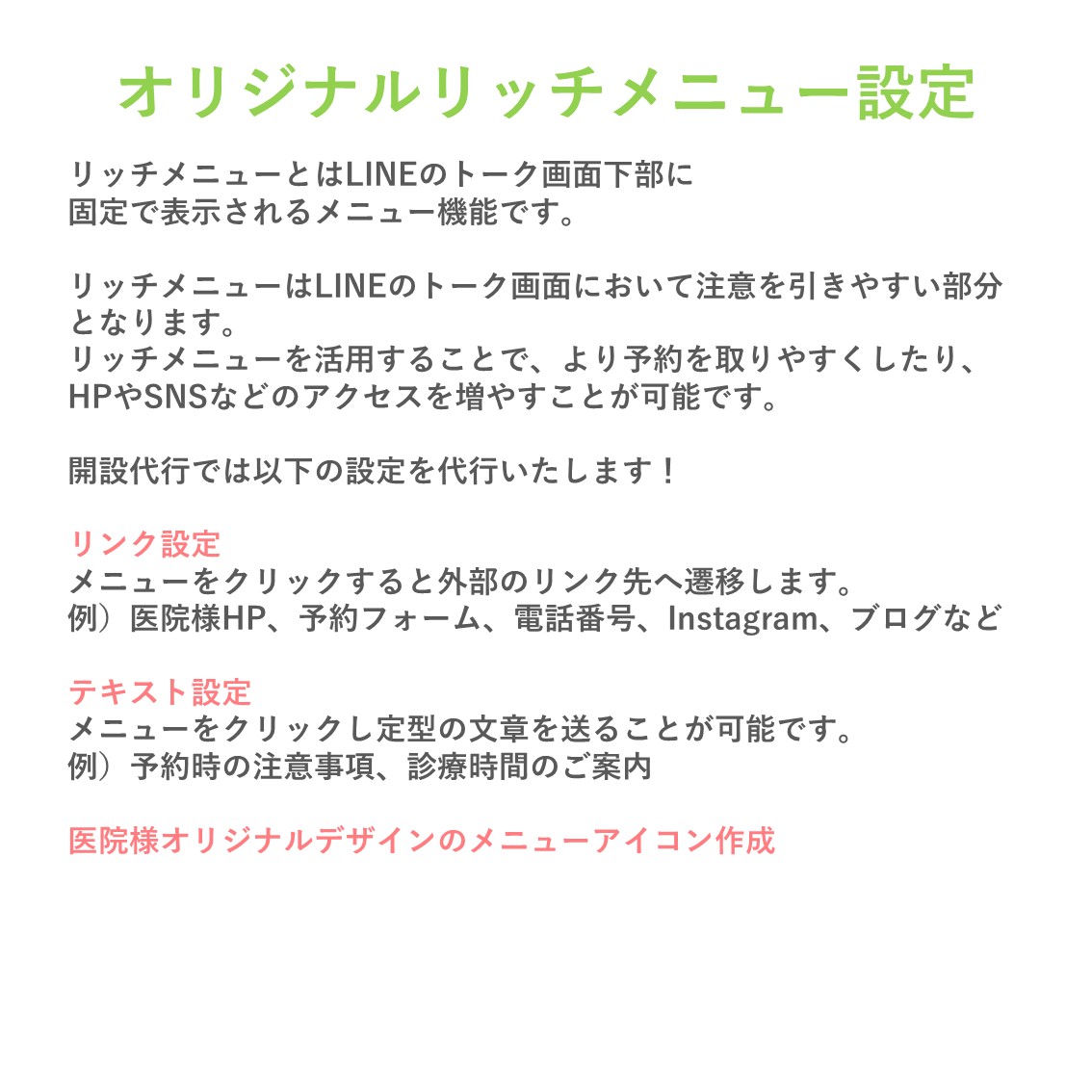 お忙しい医院様に代わり、公式LINEの開設からデザイン作成までを行います。